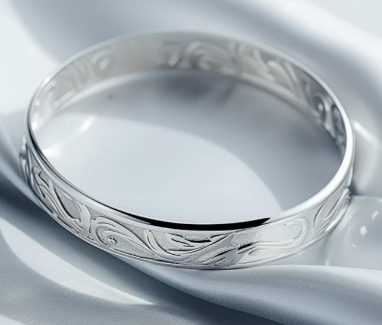 Like their jade and gold counterparts, silver bangles are worn for protection. Their cool touch against the skin is soothing, and their lustrous surface catches light softly. Often engraved with simple auspicious patterns—bats (蝠, symbolizing福), clouds, or geometric designs—silver bangles are versatile pieces suitable for daily wear throughout the festive season.
