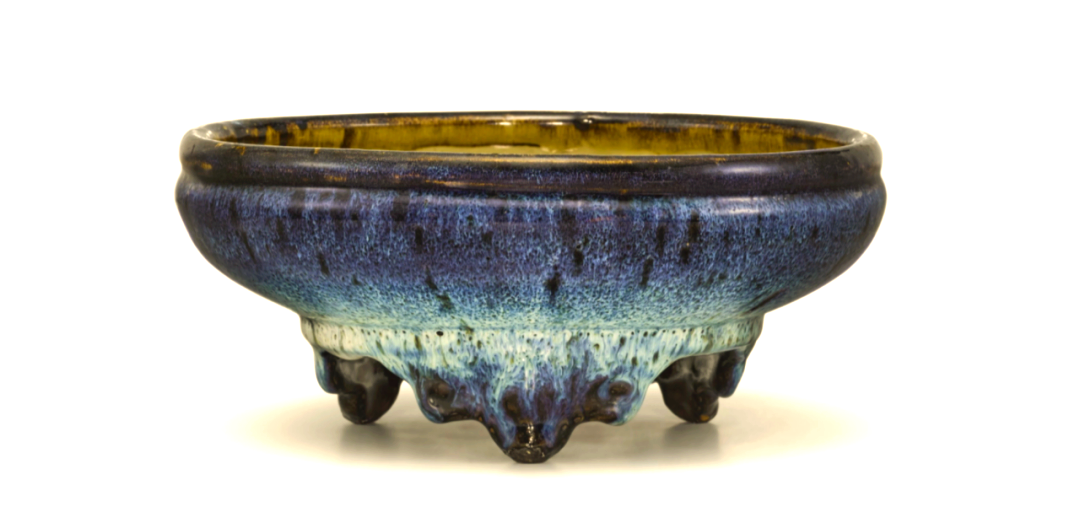 At a Sotheby’s Hong Kong auction in 2017, a Ming Dynasty Shiwan Kiln imitation Jun blue-glazed three-legged narcissus basin sold for HKD 37,500. This piece is notable not only for its fine craftsmanship but also for its skillful application of Jun-style blue glaze. This glaze, as Tang Ying described the “Lujun” type, possesses a unique color between Shiwan and Yixing glazes, with patterns that flow naturally like water, full of dynamism.