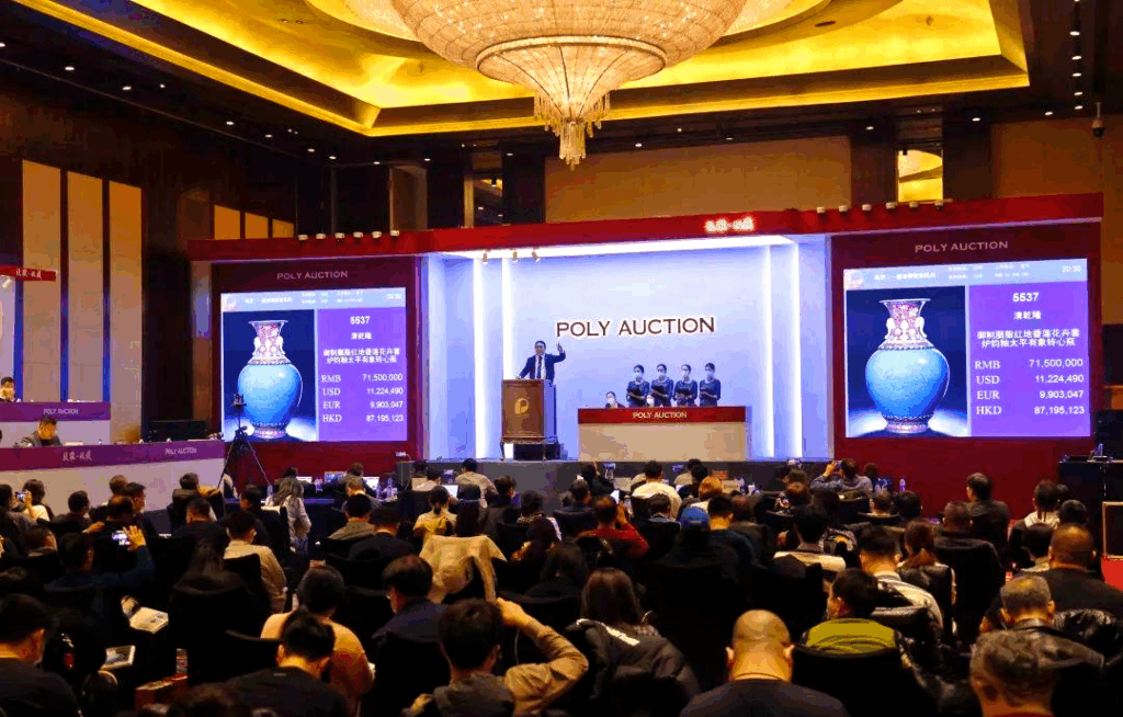 在2019年保利香港秋季拍賣會上,一件清雍正款爐鈞釉如意綬帶耳葫蘆瓶(高18公分)脫穎而出。估價1,600萬至2,200萬港幣,經過激烈競價,最終以1,947萬港幣成交,成為該場拍賣的亮點。