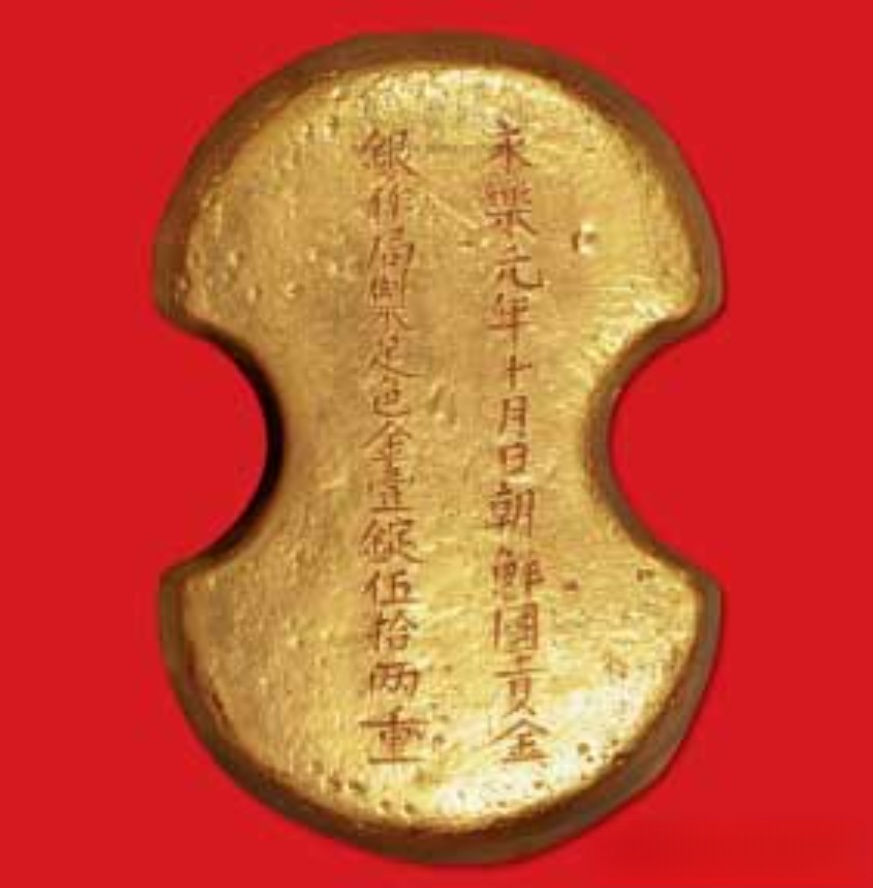4. Ming Yongle Era Tribute Gold Ingot from Korea