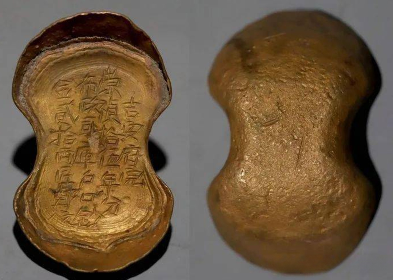 Inscribed with “Craftsman Xiang Wulang,” “Fully Pure Gold,” and “Twenty-Five Taels,” this ingot reflects the booming economy of the Southern Song despite political turmoil. Gold was not used directly in markets but exchanged for copper currency. The craftsman’s mark demonstrates a mature system of gold production.