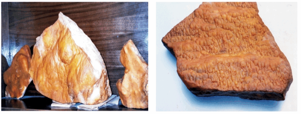 從礦物學上講,黃龍玉並非玉(既非軟玉也非翡翠),而是一種 玉髓 ,即石英( SiO₂ )的隱晶質變種。它的形成是一個地質作用的故事:富含二氧化矽的熱液滲入 怒江斷裂帶 古老的的花崗岩與板岩裂縫中。經過漫長歲月,這些沉積物結晶,並常因 鐵氧化物(赤鐵礦、褐鐵礦) 的沁染而獲得其標誌性的黃至紅色調。