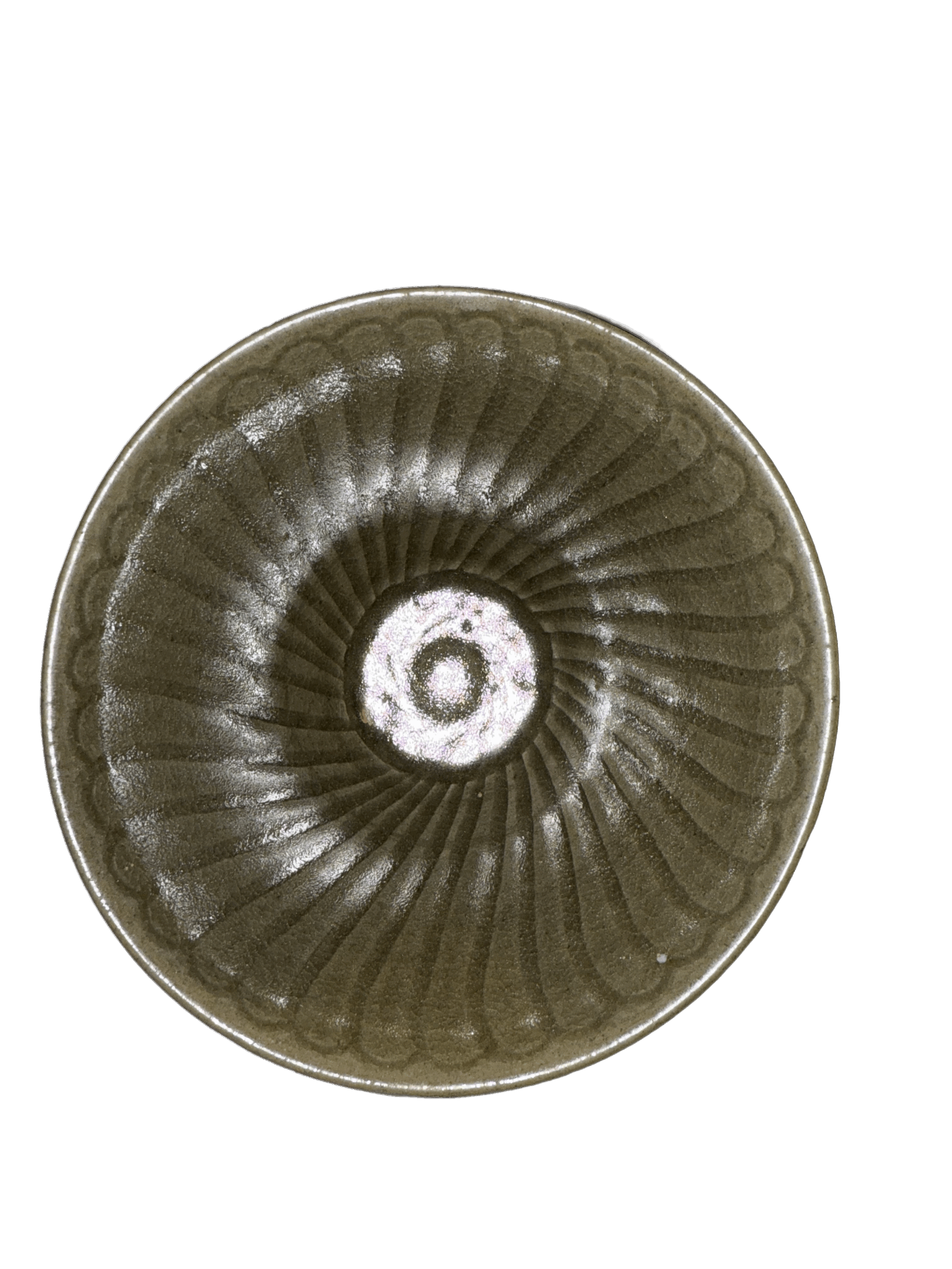 The Yaozhou Kiln was a representative of northern celadon in the Song Dynasty, famous for its “sharp carving and verdant glaze color” worldwide. This bowl adopts the typical “half – knife clay” carving technique of the Song Dynasty Yaozhou Kiln. The craftsmen used the knife as a pen, making deep oblique cuts on the porcelain body, creating a three – dimensional effect with uneven edges of the patterns. After high – temperature firing in the kiln, the glaze color in the carved grooves is deep, while that on the raised parts is bright, forming a visual rhythm of light and dark contrast, which showcases the Song Dynasty ceramic craftsmanship of “being as skillful as casting gold and as delicate as carving jade”.