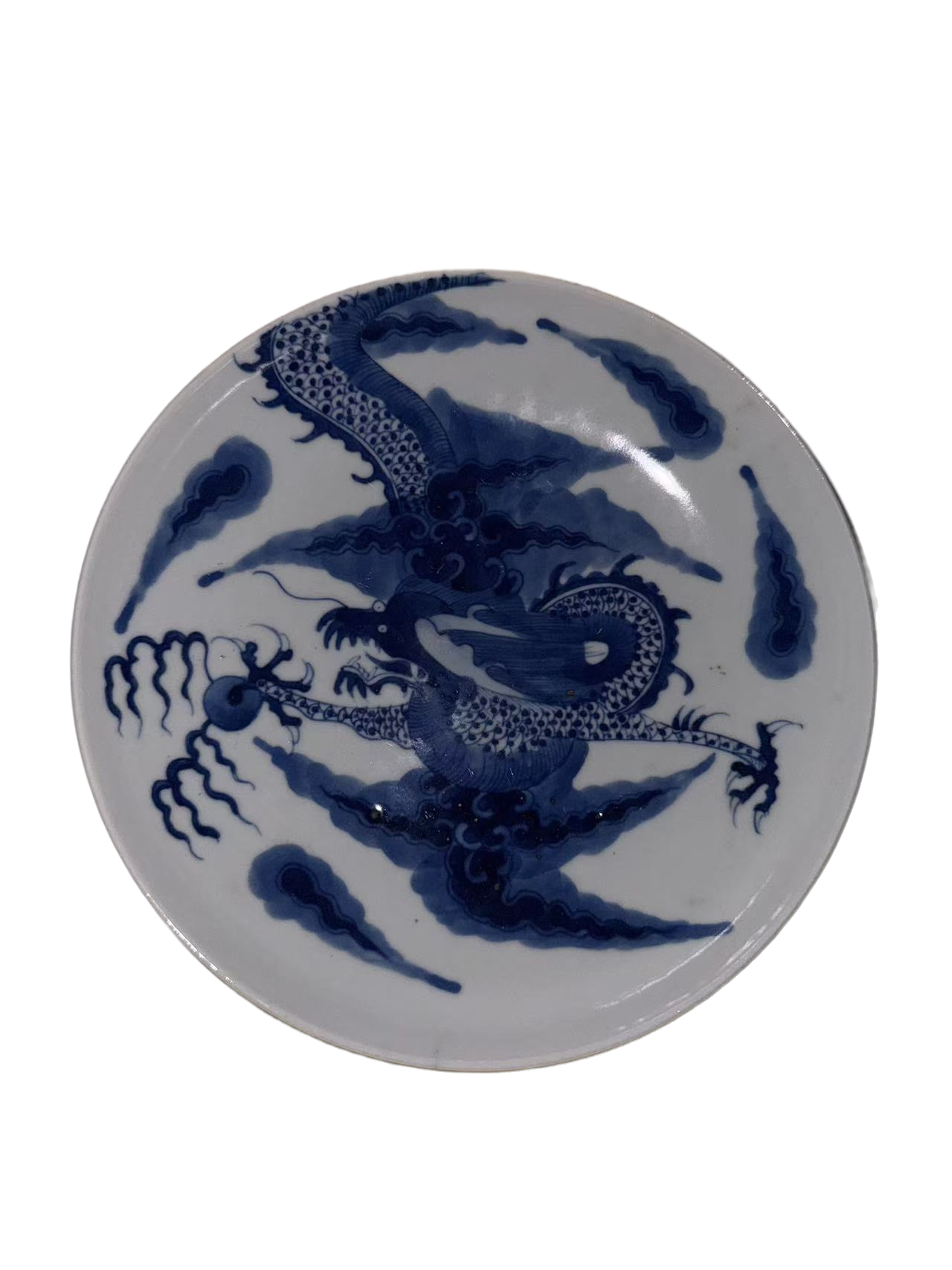 Qing Dynasty Daoguang Blue-and-White “Crossing-the-Wall Dragon” Pattern Dish | A Relic from the Imperial Kiln, Radiating the Auspicious Qi of the Dragon