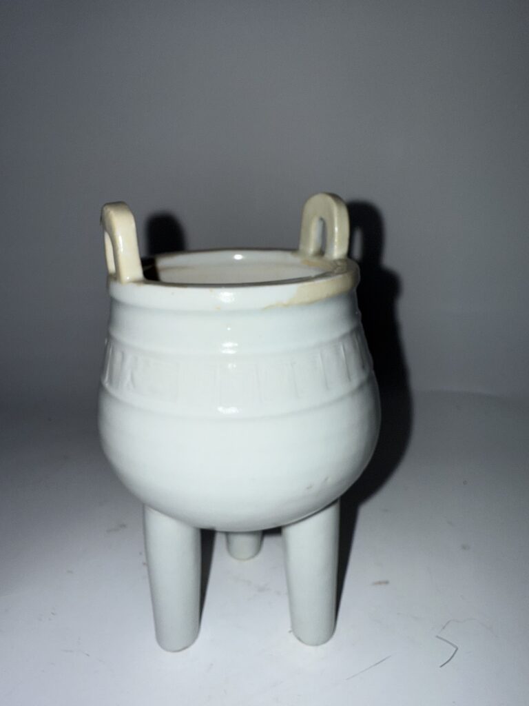 As one of the five famous kilns (Ru, Guan, Ge, Jun, and Ding) in the Song Dynasty, the Ding Kiln’s white – porcelain technology was unparalleled in the world and had a profound influence. The three – legged incense burner was a commonly used incense – burning utensil in the study rooms and ceremonial places of the literati in the Song Dynasty, carrying the dual connotations of “incense culture” and “ceremony culture”. This burner is not only a microcosm of the ceramic art in the Song Dynasty but also witnesses the life philosophy of “cultivating one’s character with incense” of the traditional Chinese literati. It has important historical, artistic, and cultural research values.