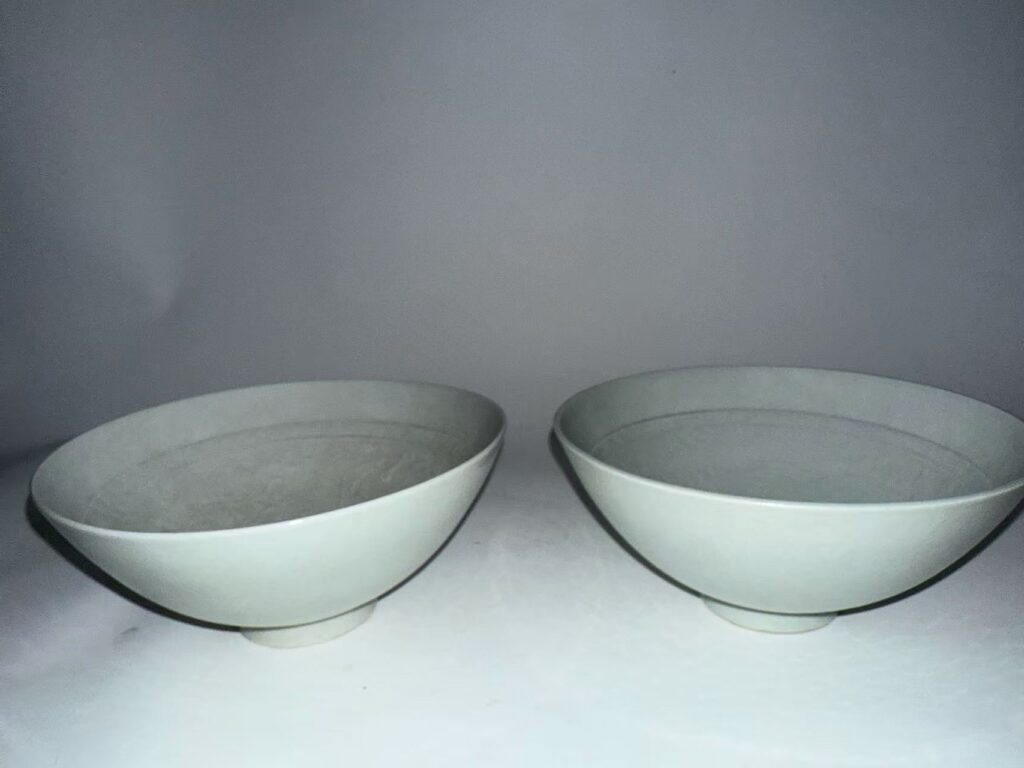 Designed in the standard imperial kiln bowl style, they have slightly flared mouths, smooth sloping walls with elegant arcs, and short yet stable ring feet. The shape is well – proportioned, with simple and grand lines, reflecting the aesthetic style of “advocating simplicity and pursuing antiquity” in the early Ming Dynasty. The two bowls are almost identical in shape, indicating the strict standardized production standards of the imperial kiln at that time.