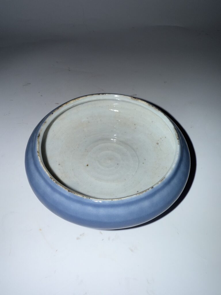 • Glazing Technique: The glaze layer is uniform and plump, with a natural transition from the body to the rim. The external blue sky glaze and the internal white glaze complement each other, showing a harmonious contrast, which reflects the craftsman’s superb skill in controlling the glaze.