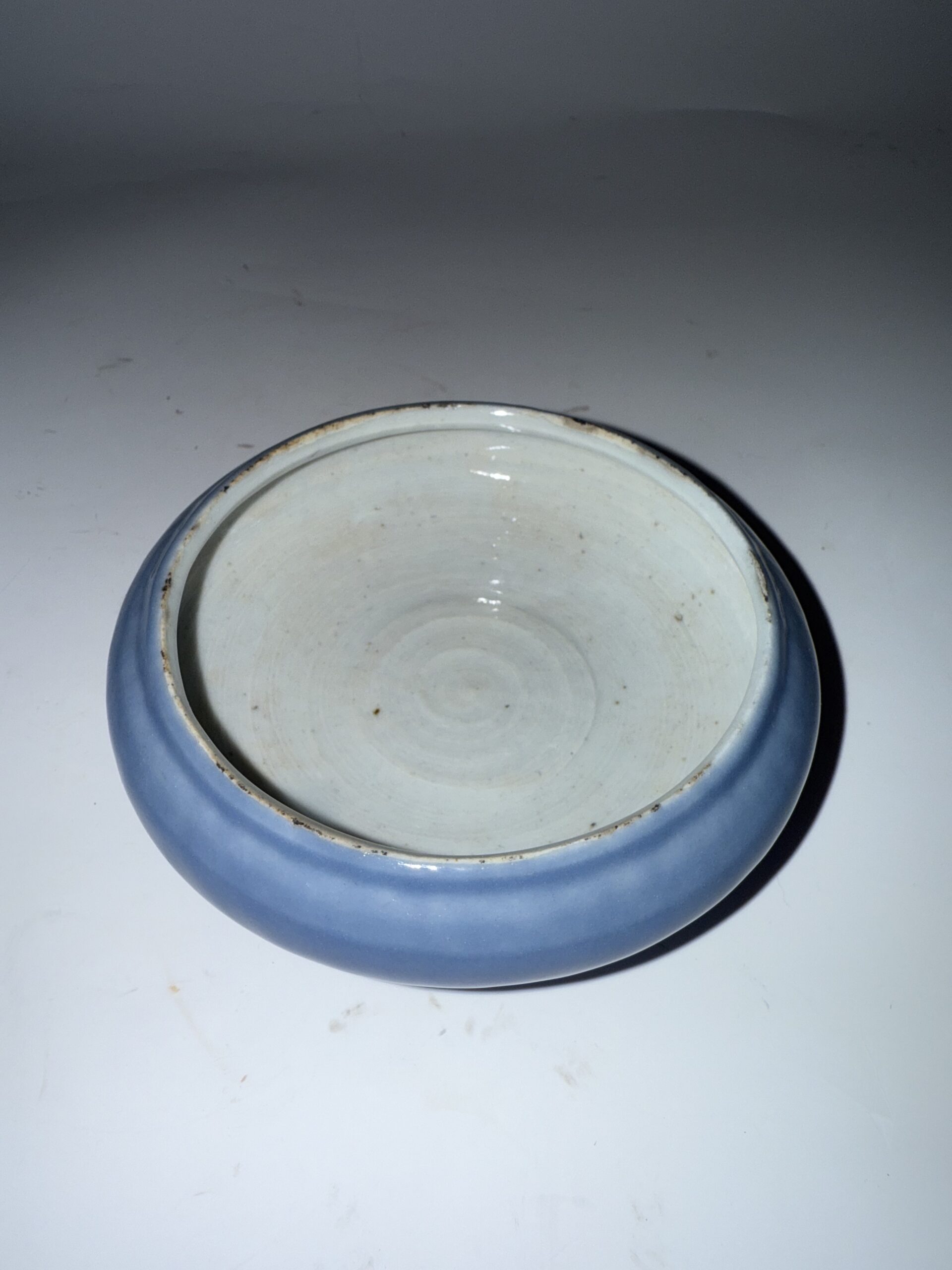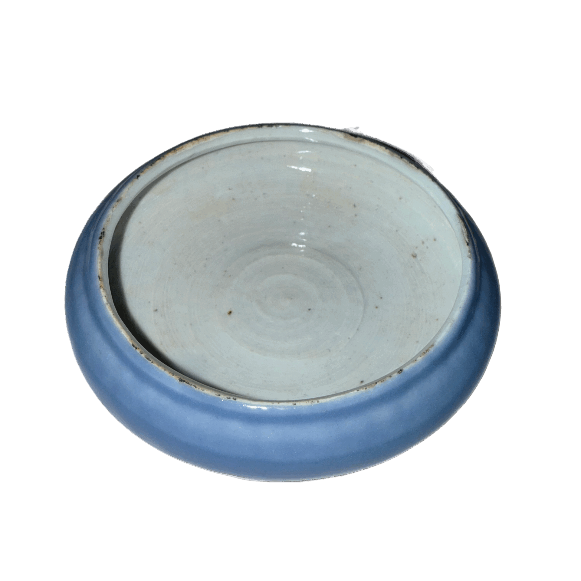 • 施釉技法:釉層均勻飽滿,從器身至口沿過渡自然,外部天藍釉與內部白釉相互映襯,對比和諧,體現匠人對釉料控制的精湛技藝。