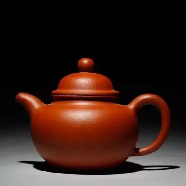 The Hanwa belongs to the圆器 (roundware) category of zisha. Over the years, countless artisans have reproduced this form, yet Yang Pengnian’s rendition remains the most memorable. Its body is cylindrical,宽口窄底 (wide mouth, tapered base), with a short, relatively直挺 (upright) spout. The lid is nearly flat, slightly arced, surmounted by a bridge-shaped knob incised with a crabapple pattern on its surface. The clay is dense and robust, its sandy texture暗红 (deep red). A remarkable feature: the lid fits snugly yet can be rotated freely; lifting the knob alone lifts the entire pot—a testament to exquisite workmanship.