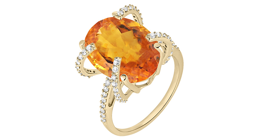Citrine, the transparent yellow to brown-orange variety of quartz, has been used in jewelry for millennia. Its name comes from the French citron (lemon). Historically confused with topaz, citrine was believed to share its calming properties, soothing tempers and promoting tranquility.