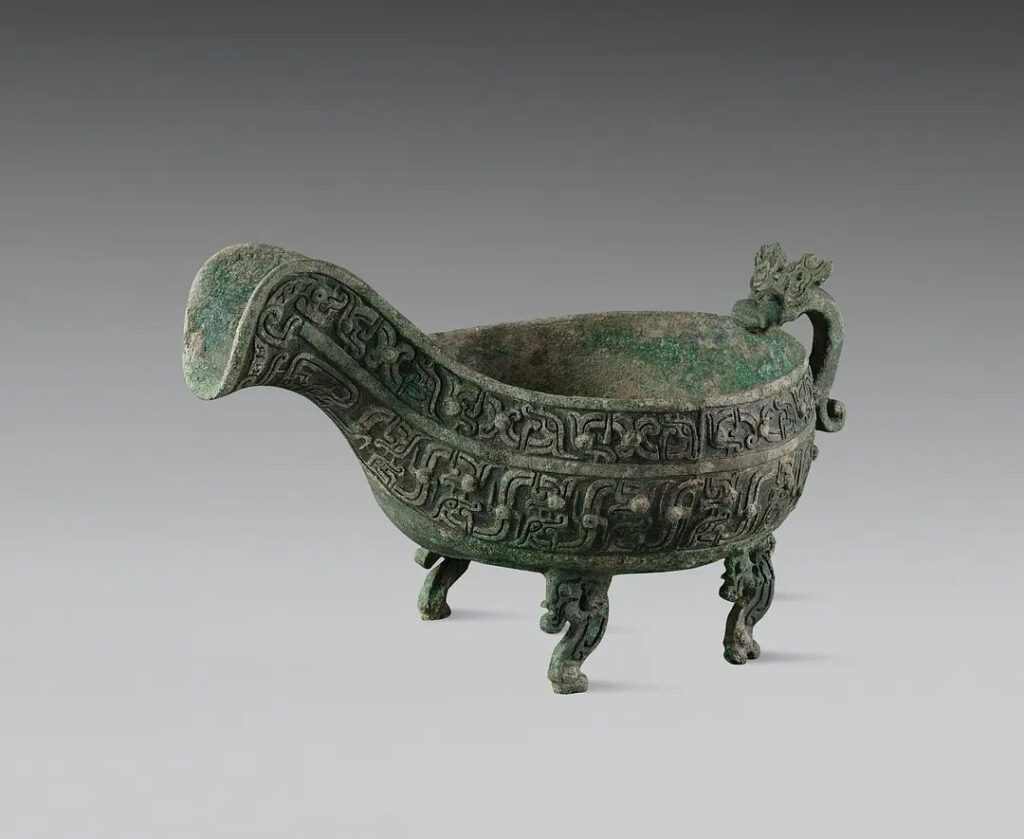 Wine warming vessel also used in rituals for libation ceremonies. Appeared in Erlitou culture, popular Shang to Early Western Zhou.