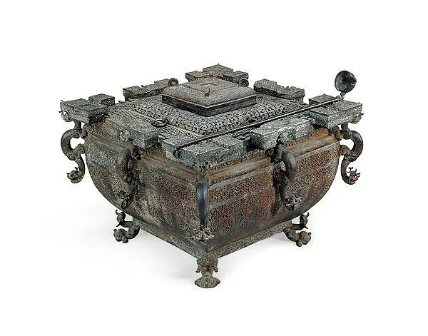 Cooking and serving vessel. The earliest bronze dǐng was unearthed from the Late Xia Dynasty Erlitou site. Remained popular throughout the Bronze Age.