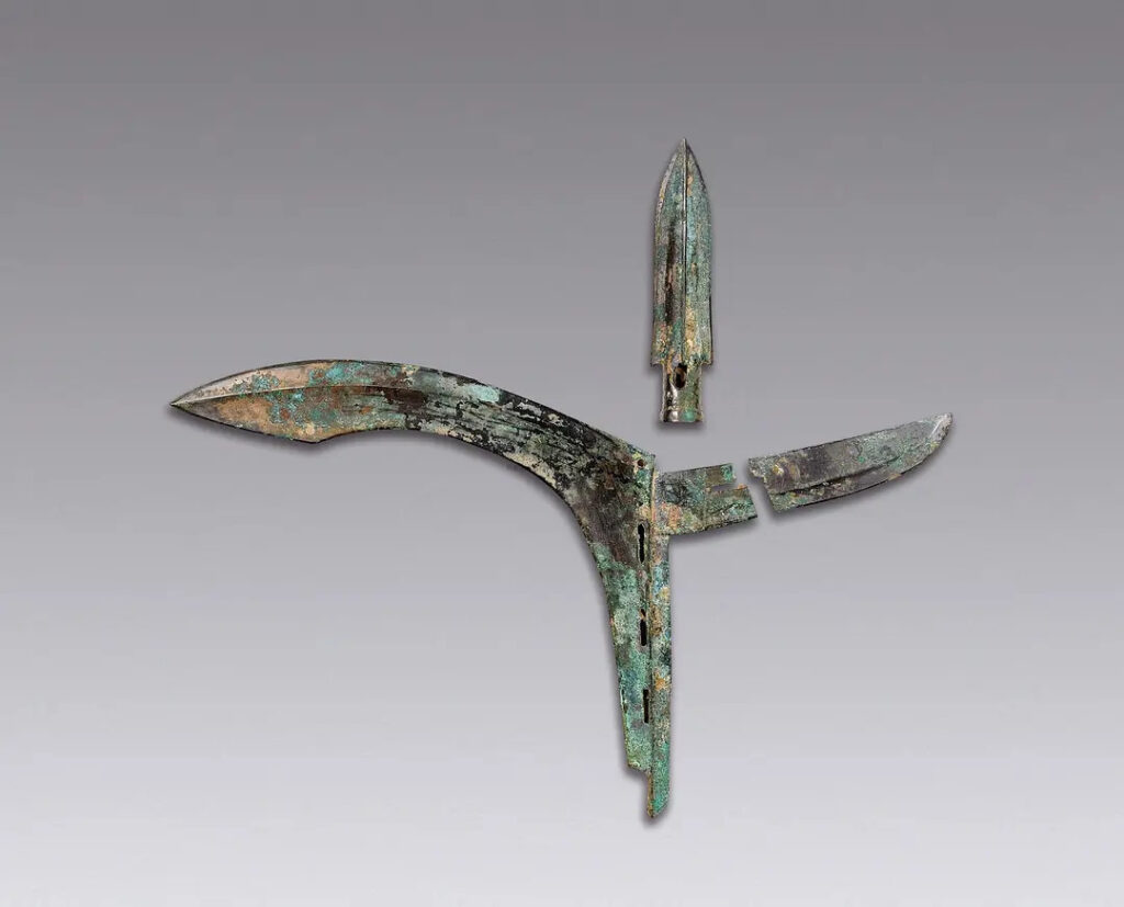 Arrowhead with sharp point, spread wings, spine, and tang. Appeared in Erlitou culture with strong regional variations.