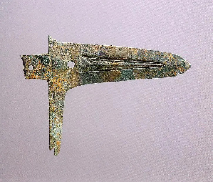 ② 戈:用於鉤殺的兵器。在青銅兵器中,戈是出現比較早的,在二里頭文化時期就已經出現,一直延續使用至戰國以後。